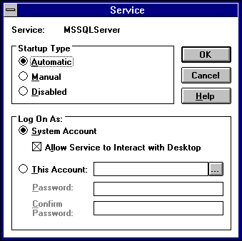 If you still have difficulty starting SQL Server or SQL Executive under a particular user account, one way to troubleshoot is to assign that account to another service¾for example, the Spooler service¾and verify that the service can be successfully started. If not, it is probable that the account is not properly configured or cannot be validated by the domain controller (for example, if no domain controller is available).