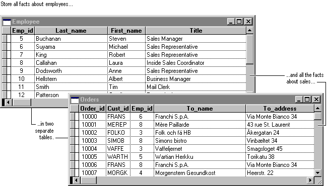 When you organize your data appropriately, you design flexibility into your database and gain the capability to combine and present facts in many different ways. For example, you can print reports that combine facts about employees and facts about sales.