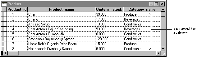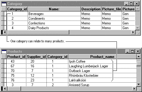 For example, the Category and Products tables in the Tasmanian Traders database have a one-to-many relationship.