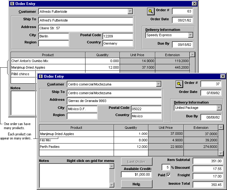 The Order Entry form uses information from several tables.