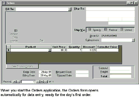 To see this form, open the Orders application in the Samples subfolder of theOffice folder.