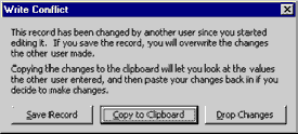 If a record is locked when Access attempts to update it during synchronization, Access retries the update several times. If the record remains locked after repeated attempts, the synchronization fails, and Access records an error in the MSysErrors system table. Although this type of error is exceedingly rare, it may occur in certain multiuser applications. You can ignore errors caused by locked records, because Access retries updating the records during the next synchronization. Because it is unlikely that the same record is locked during the next synchronization, Access updates the record and removes the error from the MSysErrors table.