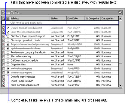 As an example of the flexibility afforded with Outlook views, this section includes illustrations that show the same task data displayed in three different views.