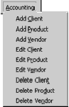 If your menus become crowded and difficult to scan, you can use submenus to organize them more effectively and add clarity to your Visual Basic application by reducing the amount of information presented to the user at any one time. For example, suppose that you create a menu that presents a number of options, as shown in the following illustration.