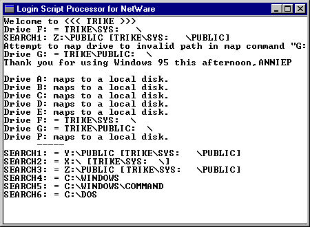 Note The Windows 95 login script processor can handle any documented NetWare login script commands. Any undocumented variations on NetWare commands might not be processed as legal statements.