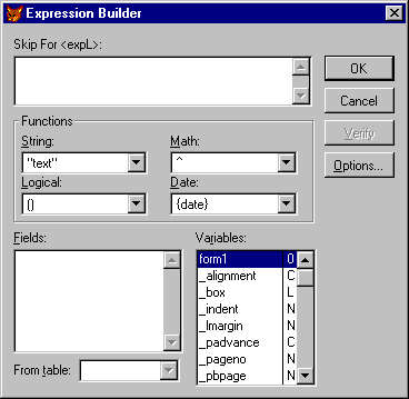 If the expression evaluates to false (.F.), the menu or menu item is enabled. If the expression evaluates to true (.T.), the menu or menu item is disabled and cannot be selected or chosen. For details, see DEFINE BAR and DEFINE PAD.