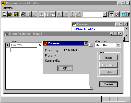 Tip To see an example of a menu system, run the Tasmanian Traders application, Tastrade.app, located in the Visual Studio …\Samples\Vfp98\Tastrade directory.