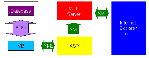One of the demos I presented at the talk illustrates this concept. In the demo, I have a Visual Basic application grab data from a Microsoft Access database using Active Data Objects (ADO). I then persist the ADO recordset to XML and POST that XML to the server. Once the data is written to the server, I can process that data using a Web application (using Internet Explorer 5), eventually displaying the data in the browser.