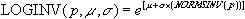 LOGINV(probability,mean,standard_dev)